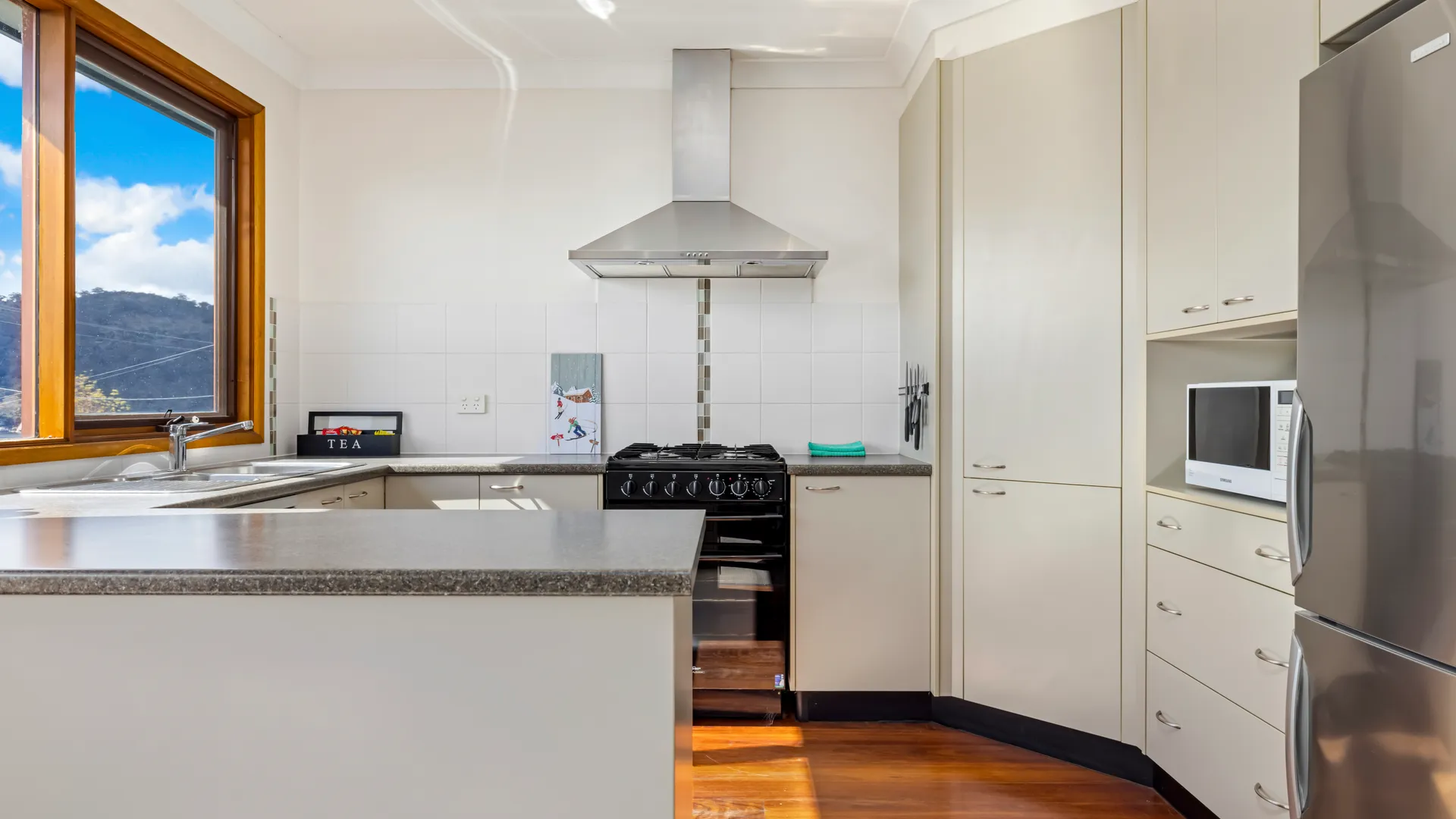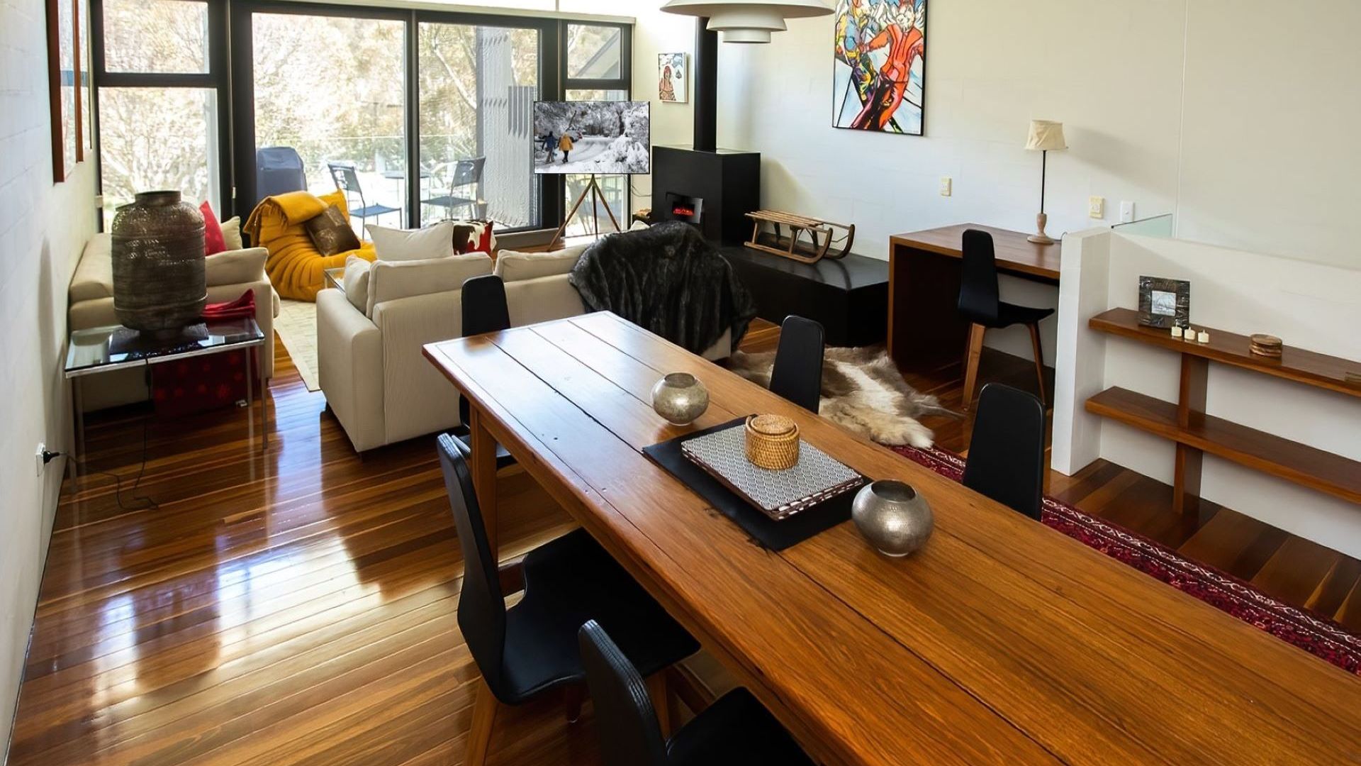 Our host Peter was very friendly. He called to to explain the check-in process, and clarified booking details. Two days in advance he called to let me know about the pre authorisation and the weather condition. The place had Great Lake view, was warm, clean and spacious. Check in instructions were precise and the host provided lovely welcome gifts. Location of the property is very convenient. Close to the town centre and Bullock flat. Would highly recommend for family getaways and ski trips.