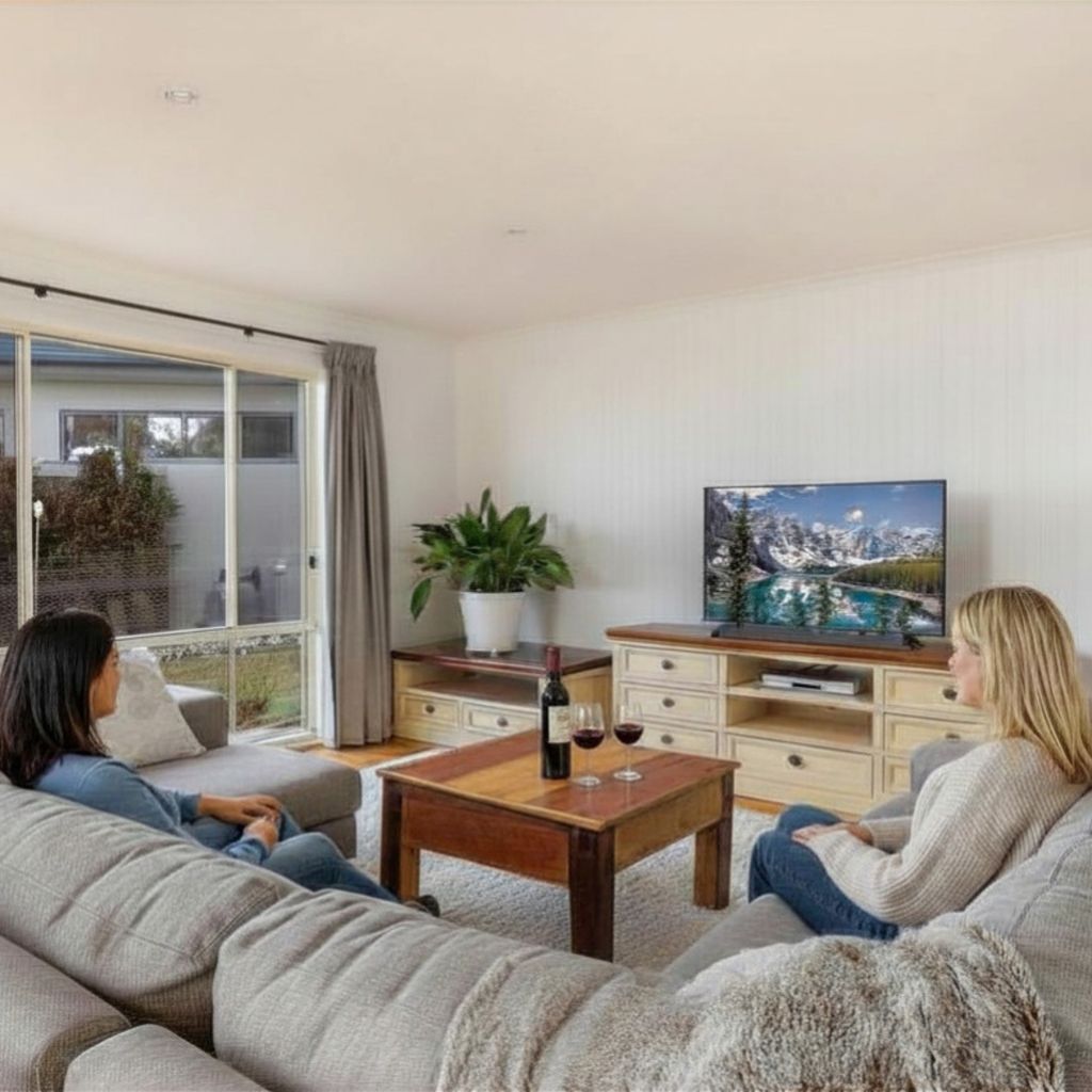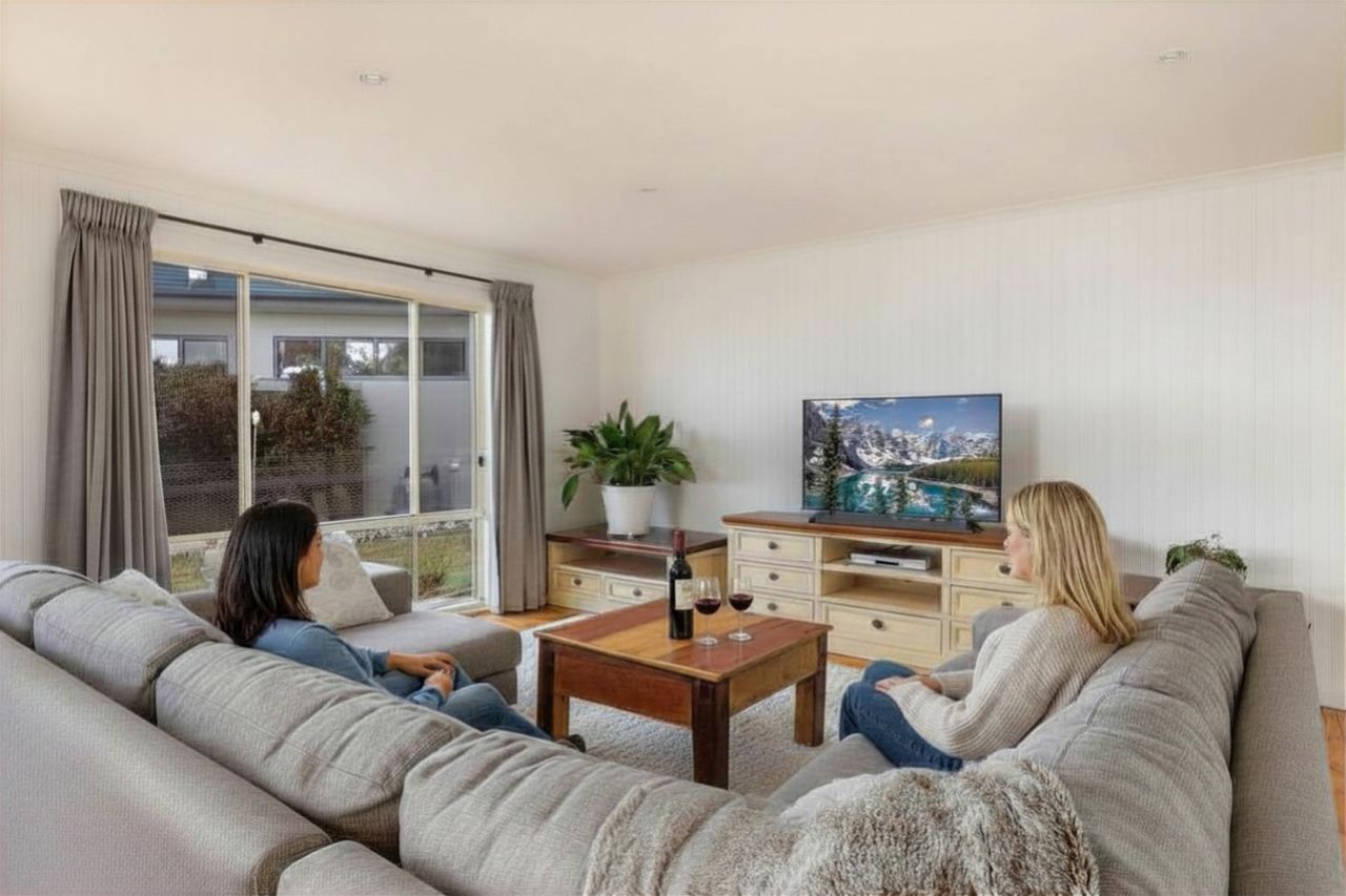 Accommodating up to six guests, the home features three bedrooms, including a primary with a private ensuite, and two bathrooms, one with a spa, which is ideal for families or small groups.